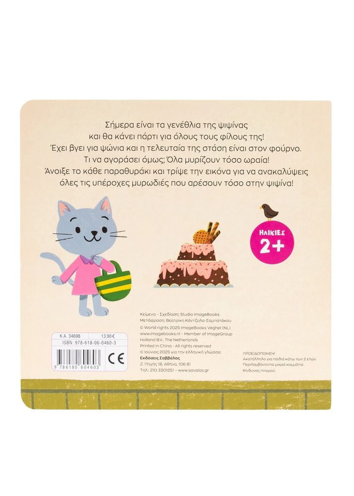 Today is the little girl’s birthday and she’s going to throw a party for all her friends! She’s out shopping and her last stop is at the bakery. But what should she buy? Everything smells so good! Open each window and rub the picture to discover all the wonderful smells that the little girl loves so much!
