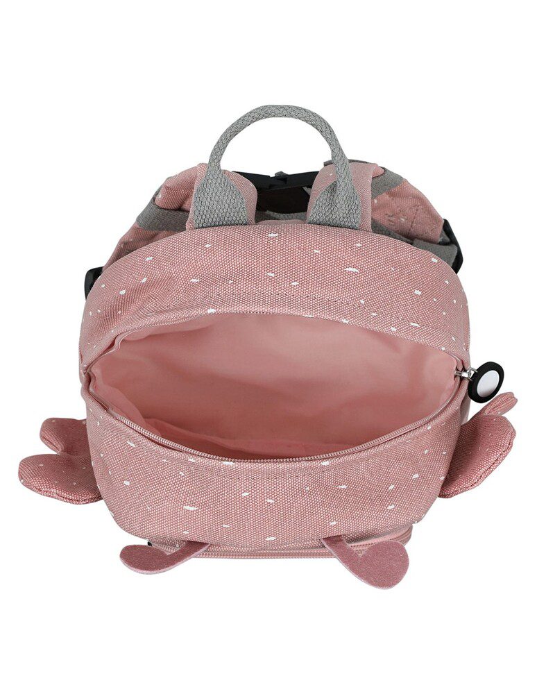The backpack has a large compartment and a small front pocket, where you can store a small snack, for example. The main and front pockets have zippers that allow children to easily open and close the backpack themselves.