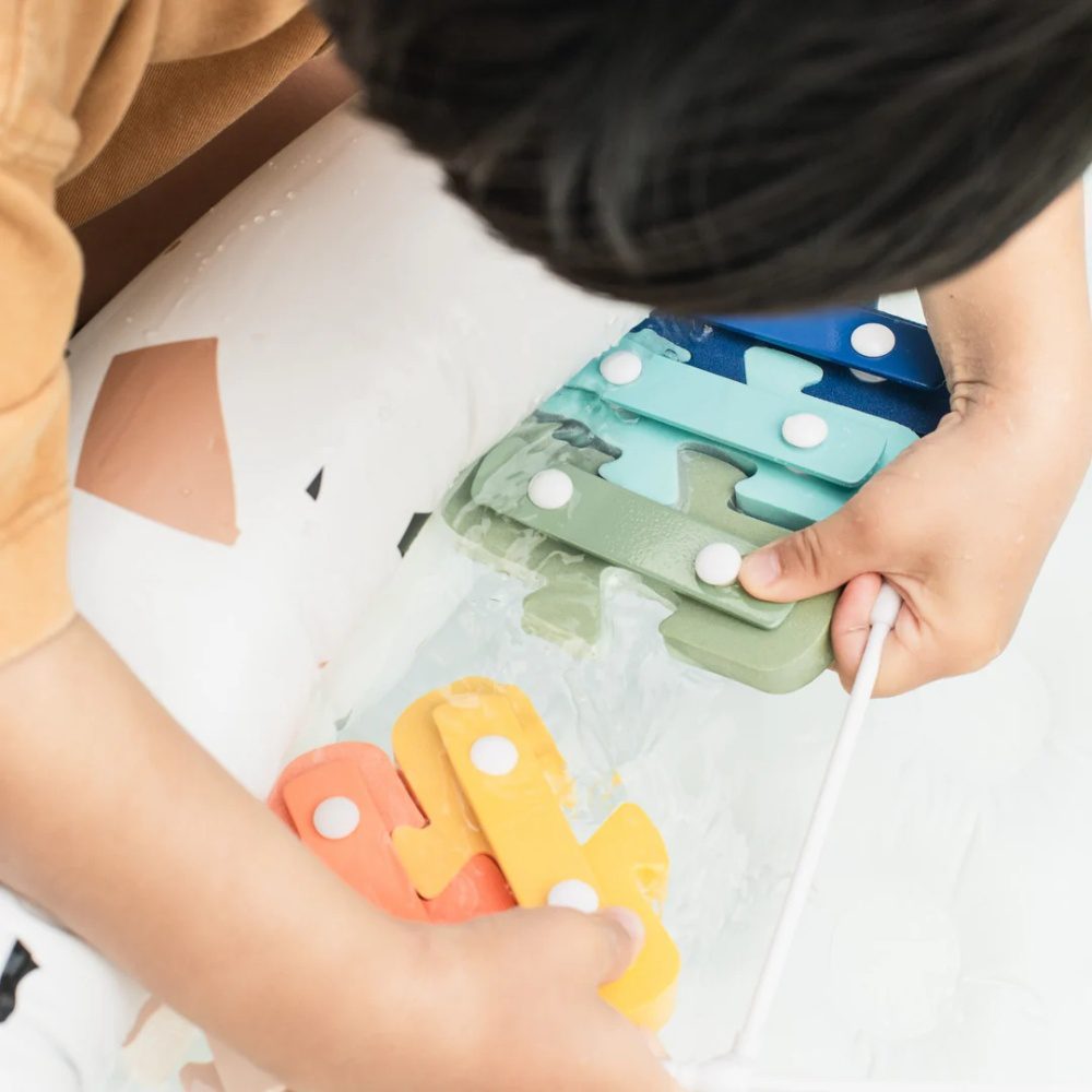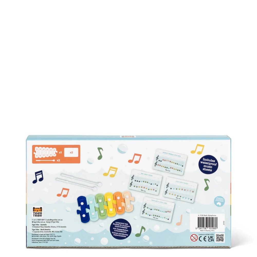 Pav the way for little maestros with the unique Musical Bath Xylophone! This set of 6 foamy, snap-on keys helps children discover sound and melody through water play. The 4 songs included offer an introduction to learning music while stimulating self-confidence and the ability to create.