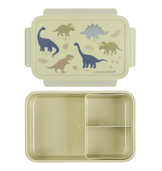 This spacious, green bento lunch box with the Dinosaurs design is ideal for a fresh and varied lunch at school or on the go. The airtight click & close lid and removable bento tray with two compartments ensures a perfectly organised lunch.