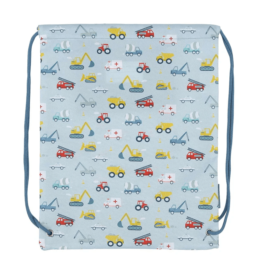 This lightblue vehicles drawstring bag is ideal to use as a sports bag for school or swimming lessons. It is lightweight, easy to open and close, and has a zipped inside pocket for keeping valuables safe.