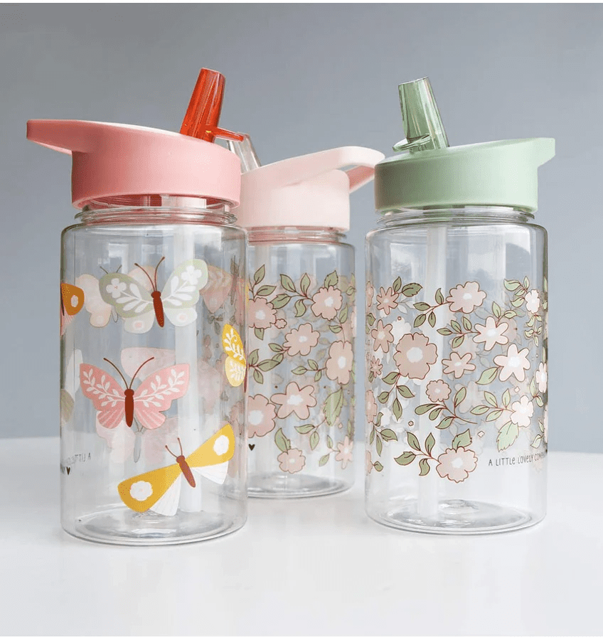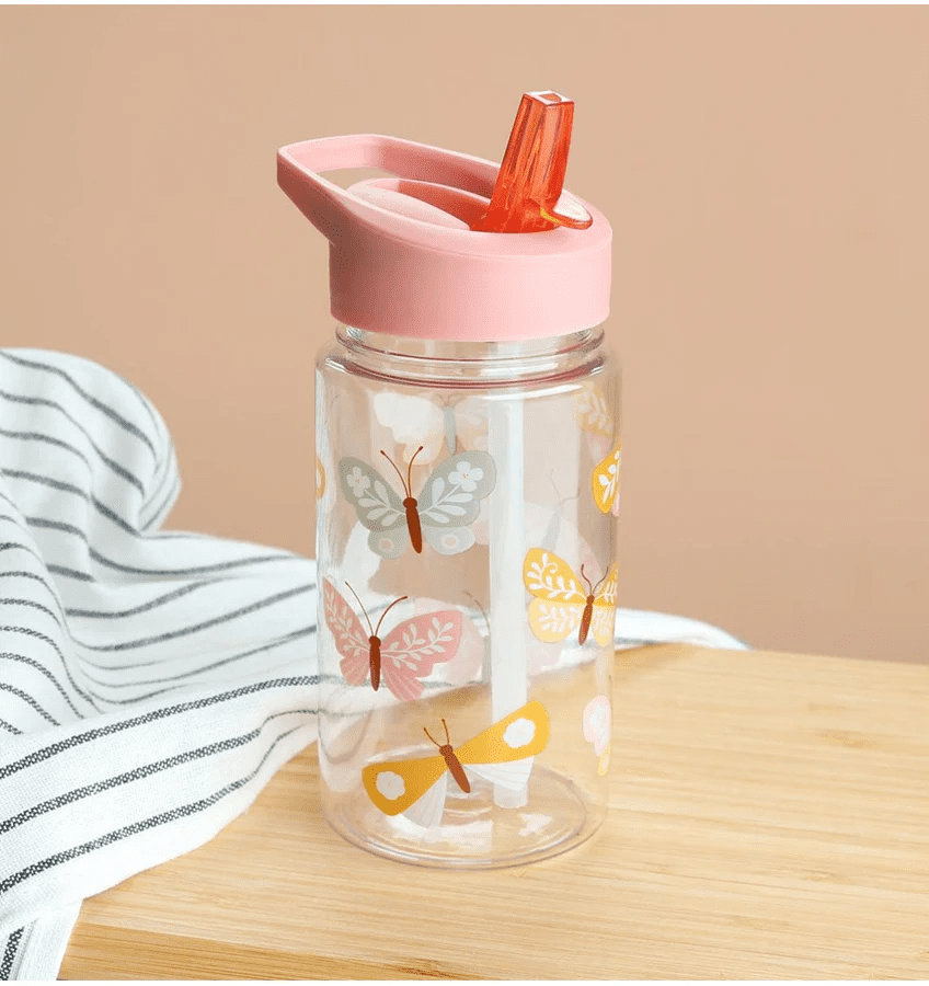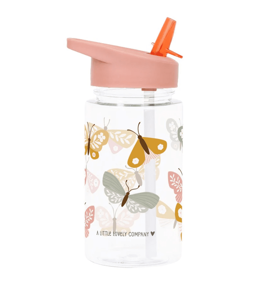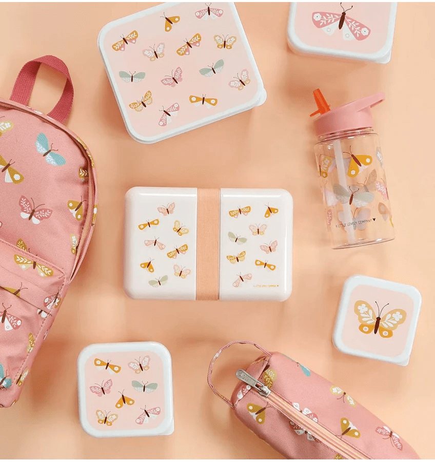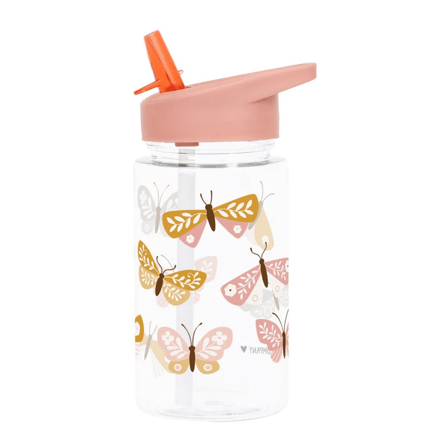 Transparent drink bottle with butterflies is ideal to take to school. The bottle for kids has a capacity of 450 ml, is made of Tritan and is leak-proof. Complete the school set with a matching pencil case, lunch box and backpack with butterflies.