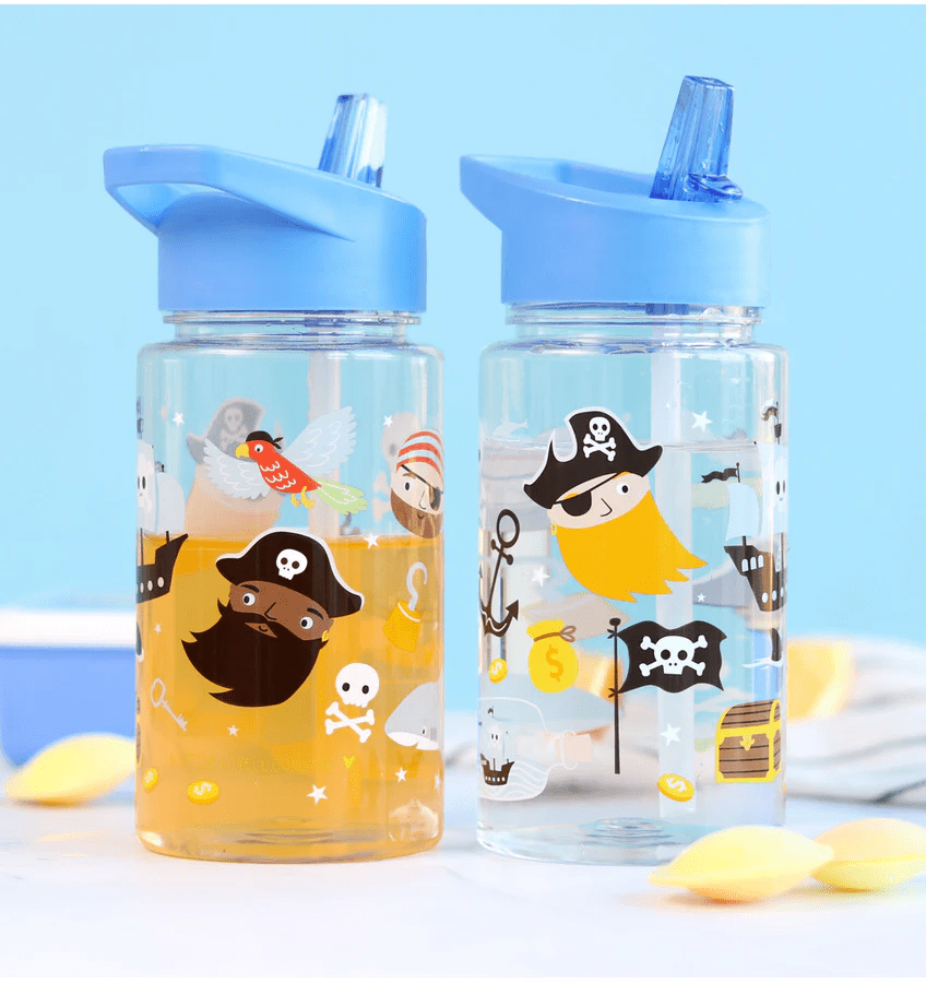 Transparent drink bottle with pirates is ideal to take to school. The bottle for kids has a capacity of 450 ml, is made of Tritan and is leak-proof. Complete the school set with a matching pencil case, lunch box and backpack with pirates.