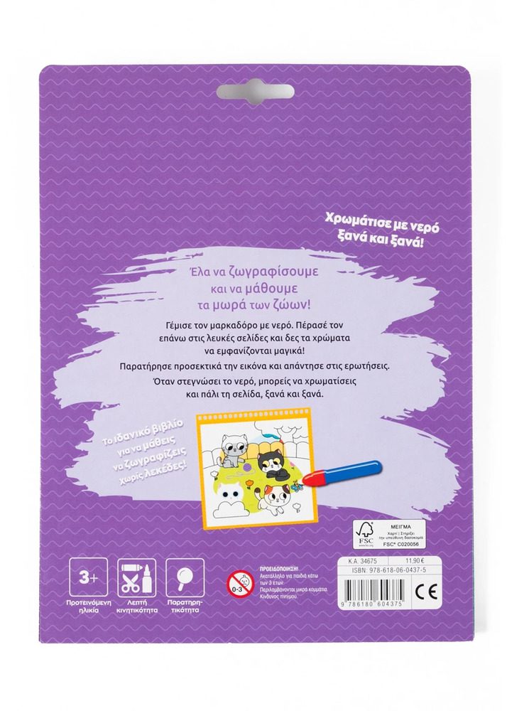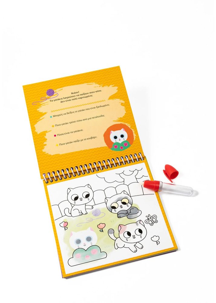 Fill the marker with water. Run it over the blank pages and watch the colors magically appear! Observe the picture carefully and answer the questions. When the water dries, you can color the page again, over and over again.